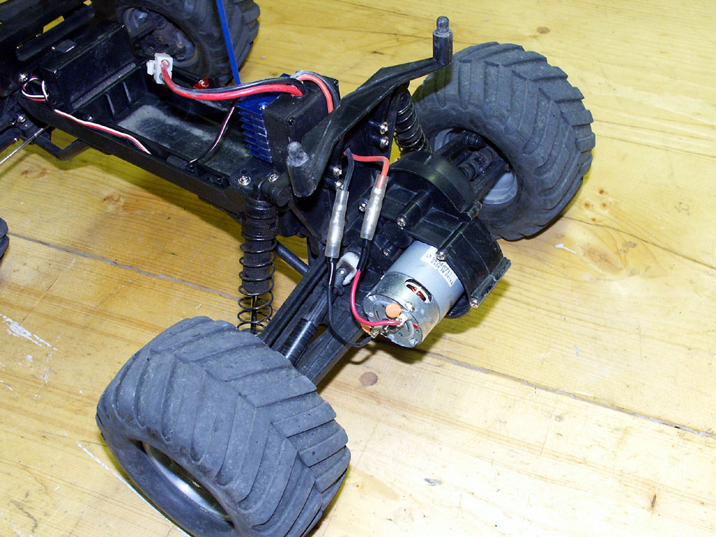 Bought this for my son from eBay for $104. It came with 4 Traxxas Big Bore aluminum shocks, a 10-turn handwound motor, RPM bumper, and no speed control. The 10-turn went back on eBay, the Big Bore's went to my pede, and he got the XL-1 ESC outta my pede. I decided I wanted to slow this truck down for him. He's only 5 and this is replacing a real crummy ole' Nikko. To accomplish this, I got a slower RS-550PF motor and geared it 18/81. I *HIGHLY* recommend this setup for a young child. It goes just over 10mph or so with plenty of torque to spare. This might sound slow, but the pede chassis at this speed with an RPM bumper is just about indestructible and this particular motor has an internal fan. Neither the motor or the XL-1 even gets warm after a full run. Mods are: